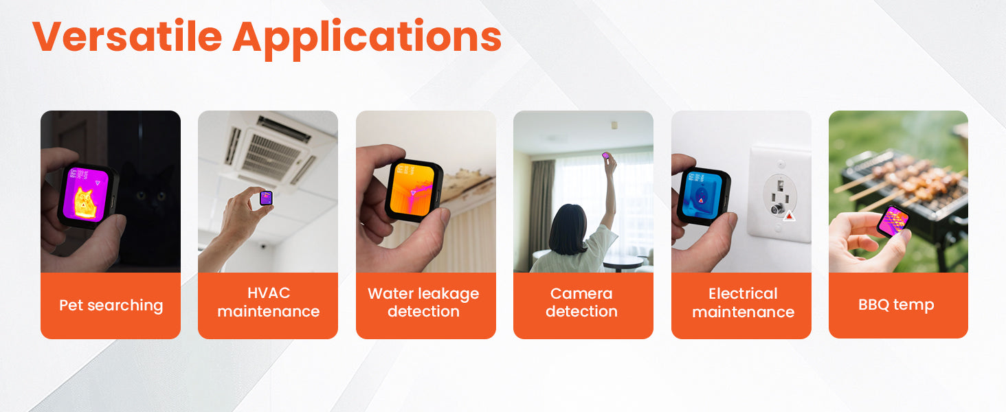 • Multi-Purpose Utility: From detecting hidden cameras and troubleshooting HVAC issues to finding winter drafts around windows and doors, locating pets at night, or checking BBQ heat —this compact thermal camera handles it all.