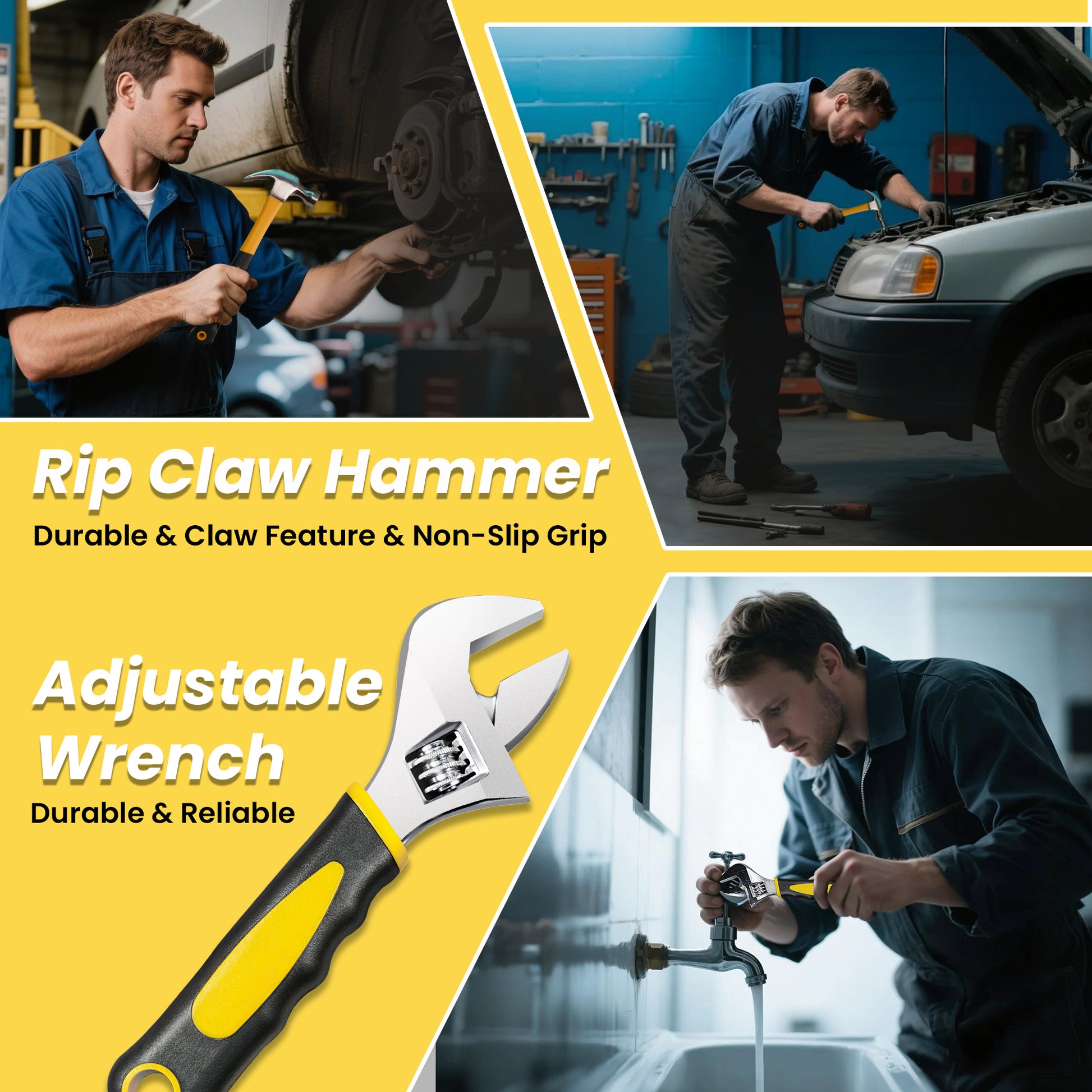 - Durable & Premium Materials-All hand tools are made of high-strength CRV/Chrome-Vanadium steel for hardness, toughness, wear resistance, corrosion resistance, and heat resistance. Includes ratchet set, socket wrench set, hex key set, and ratcheting screwdrivers, ensuring professional-level durability for daily DIY or craftsman tasks.