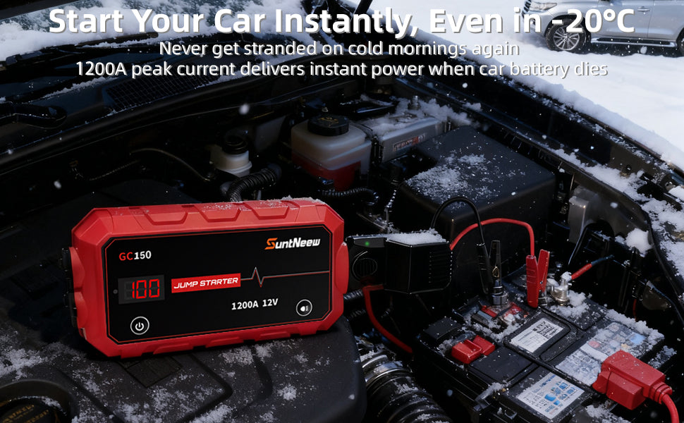 • Powerful 1000A Start & 2000A Peak Output: Equipped with a high-discharge cell pack, this jump starter delivers 1000A for 1 second and 2000A peak (0.1s), enabling reliable starts for most 12V gasoline and diesel vehicles.