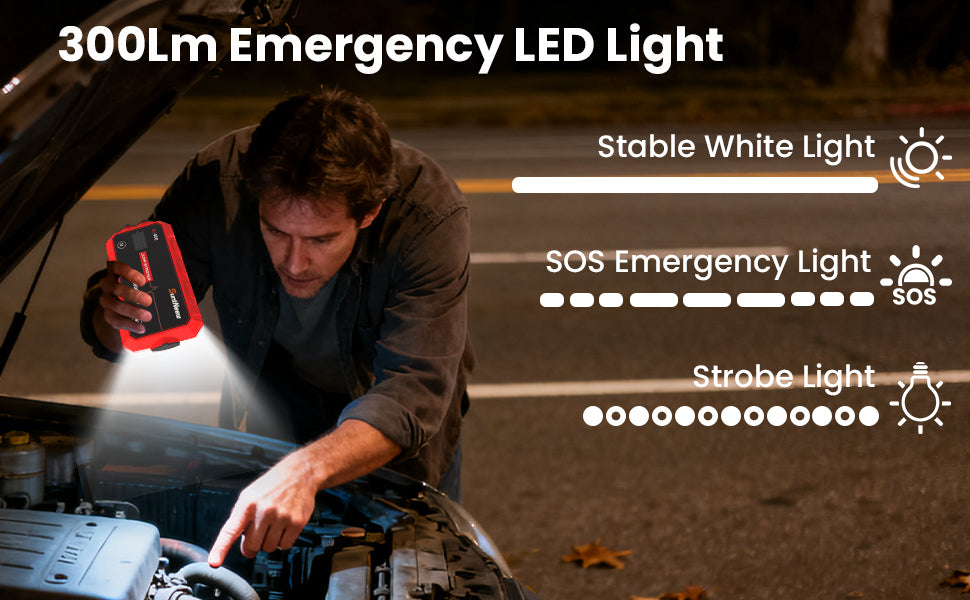 • PD 18W Fast Charging Dual USB Ports: Functions as a high-speed power bank with PD 18W output (5V/3A, 9V/2A, 12V/1.5A). Efficiently charges phones, tablets, dash cams and more. Ideal for roadside assistance and daily carry.